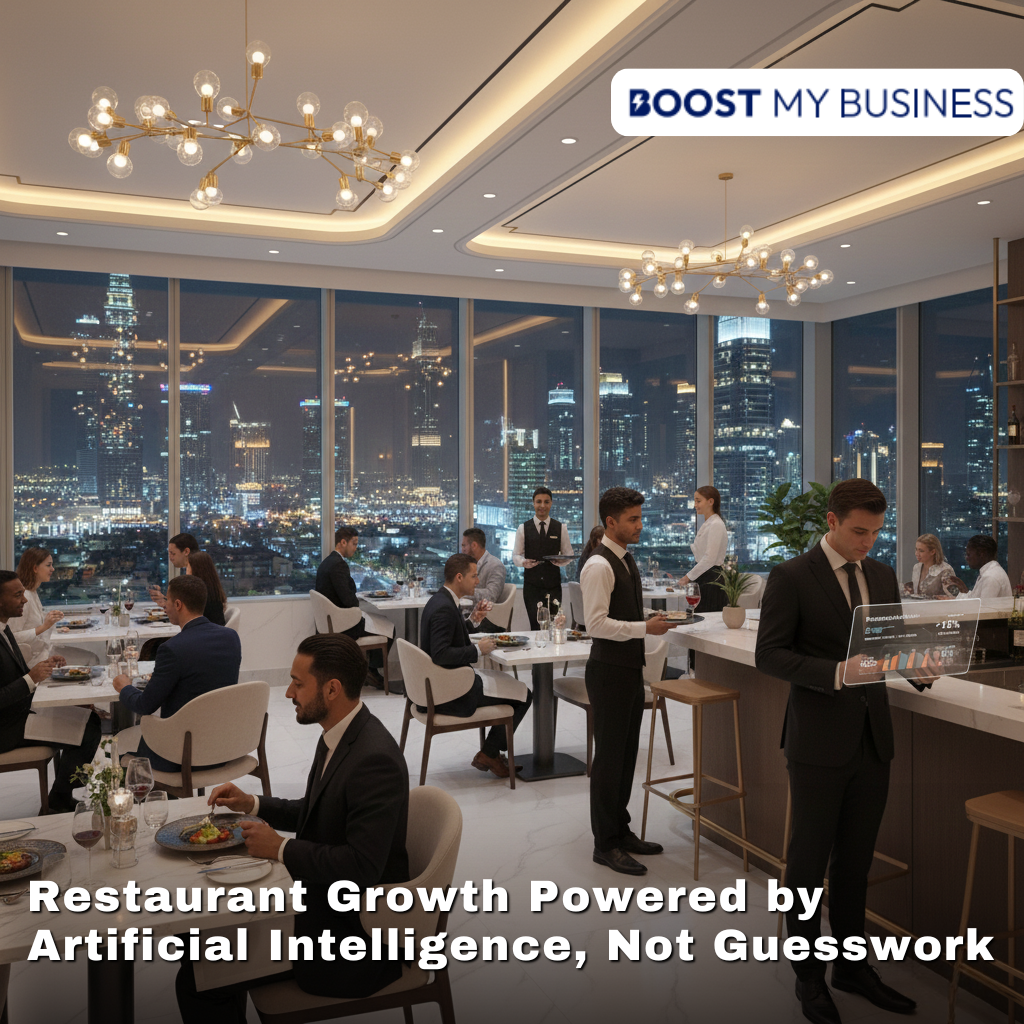 Boost My Business AI Innovation is a DIFC-licensed marketing and growth partner focused on performance and ROI. We help restaurants, real estate brokerages, fitness brands and premium retailers generate more qualified leads, bookings and walk-ins using AI-driven campaigns, hyper-local targeting and automated voice/WhatsApp follow-ups.