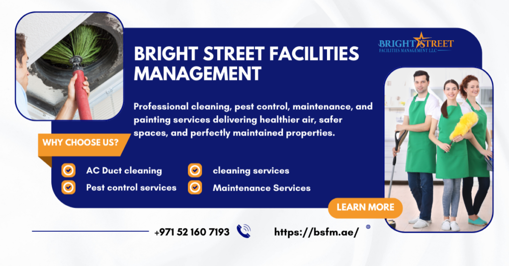 Bright Street Facilities Management – L.L.C – S.P.C is a trusted provider of professional cleaning and facilities management services in Abu Dhabi, UAE. We specialize in residential, commercial & industrial cleaning solutions tailored to meet client needs with precision & reliability. Our services include deep cleaning, maid services, pest control, sofa & carpet cleaning, and complete facilities management.